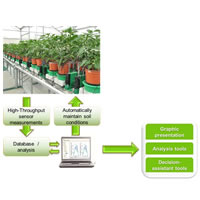 以色列Plant-Ditech公司的Plantarray系統(tǒng)是一套高通量、以植物生理學(xué)為基礎(chǔ)的高精度表型系統(tǒng),可以完成整個(gè)植物生長(zhǎng)周期中不同環(huán)境下的SPAC因子的測(cè)量。