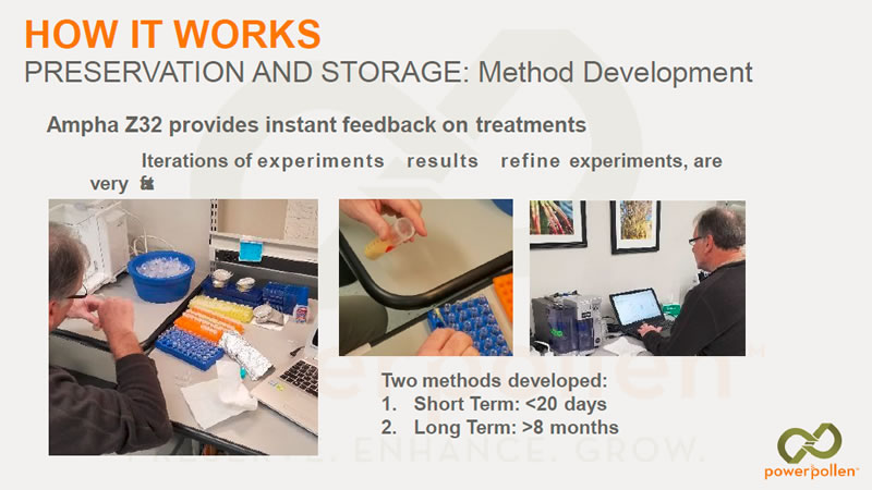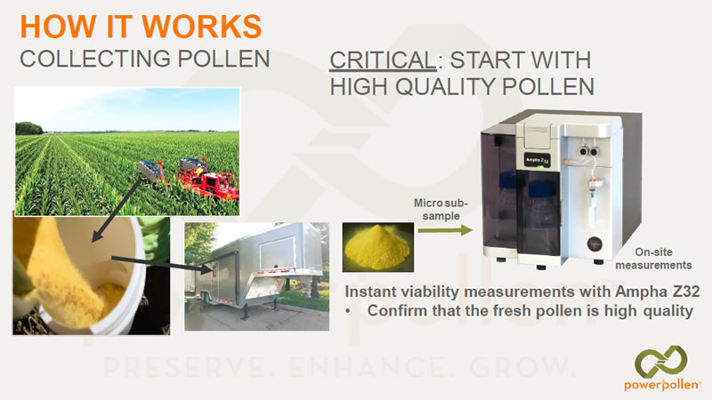 PowerPollen?公司是美國一家提供授粉解決方案的農(nóng)業(yè)技術(shù)公司,該公司利用Ampha Z32花粉活力分析儀(IFC)在花粉采集、保存、運輸、授粉的各個環(huán)節(jié)嚴(yán)格監(jiān)控玉米花粉的質(zhì)量: