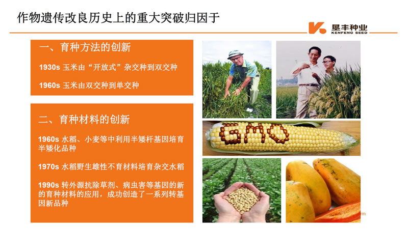 王超博士介紹了商業(yè)化分子育種流程,國際大型種子跨國公司分子育種的現(xiàn)狀和發(fā)展趨勢,并以墾豐種業(yè)公司為例闡述了分子育種平臺(tái)與技術(shù)應(yīng)用。種子是農(nóng)業(yè)的“芯片”,種子是發(fā)展現(xiàn)代農(nóng)業(yè),保障國家糧食安全的基礎(chǔ)。王超博士還詳細(xì)介紹了育種時(shí)代的變革和技術(shù)突破,提出育種創(chuàng)新主要途徑是育種方法和育種材料的創(chuàng)新。