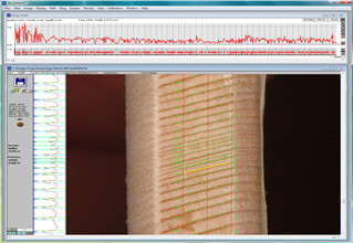 大型木材樣本可在不同部位多次分別成像;特殊的樹芯定位器用以放置柱狀樣本;兩種自動(dòng)測(cè)定年輪的方法分別適用于不同的樹木類型;人工輔助的圖像識(shí)別校正和遺漏像素添加功能;可利用木材薄片的 X 光膠片掃描進(jìn)行木材密度測(cè)定( 密度版)。此外,WinDENDRO 可自動(dòng)設(shè)置裂縫與年輪角度的切線,以保證測(cè)量的精準(zhǔn)性;另外,附加 XLSTEM 可進(jìn)行植物的標(biāo)準(zhǔn)生長(zhǎng)分析,如莖干平均半徑、直徑以及總體截面積;樹木高度、體積、樹齡等。對(duì)于所分析的年輪圖像可同時(shí)顯示如下參數(shù):年輪寬度、早材/夏材寬度、年輪最大/最小密度/平均密度、早材/夏材平均密度(高級(jí)密度版)等。