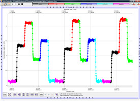 連續(xù)流動測定(左)和積累測定(右)的乙烯監(jiān)測數(shù)據(jù)圖