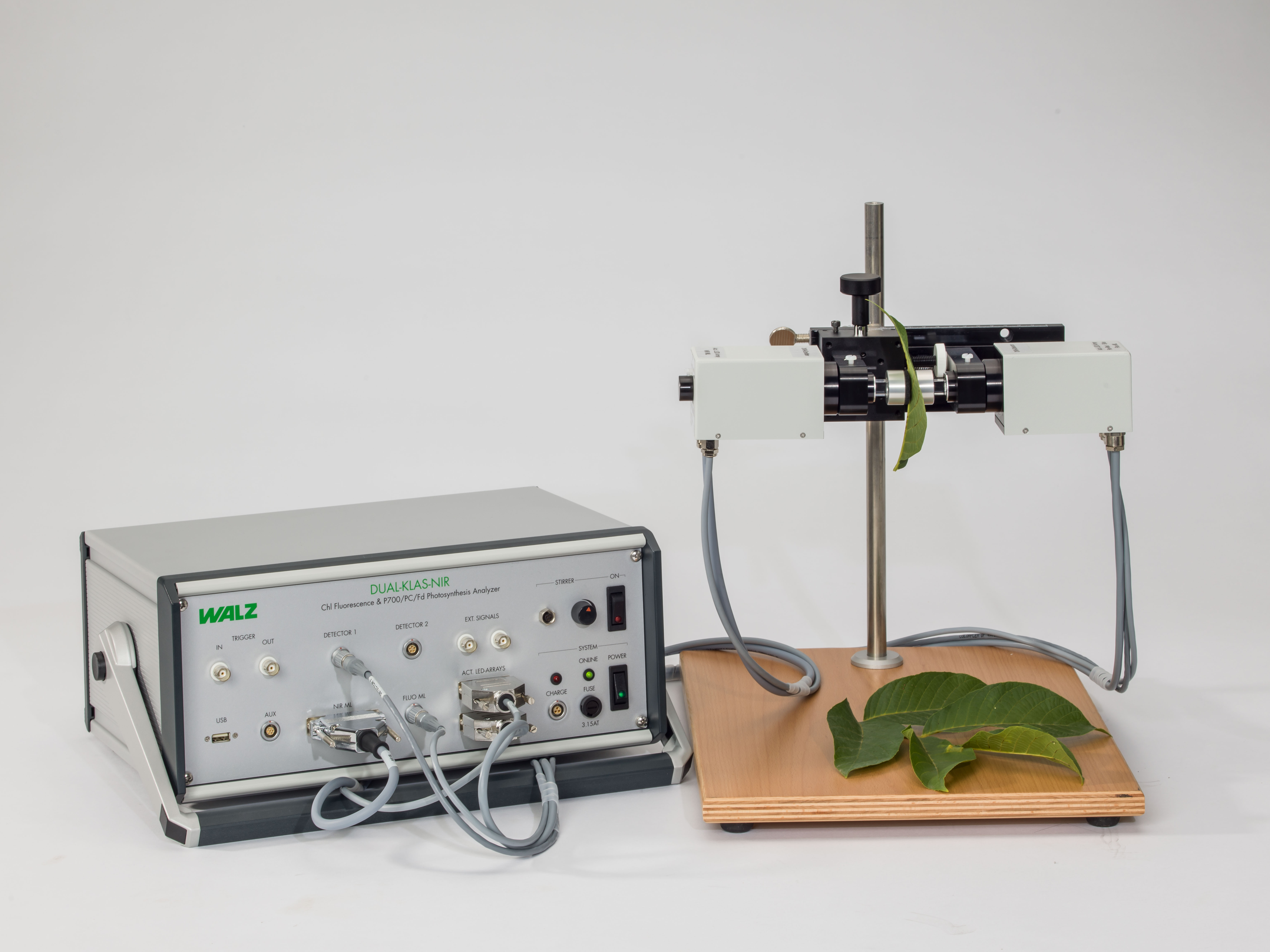 四通道動(dòng)態(tài)LED陣列近紅外光譜儀DUAL-KLAS-NIR同步測量PSII活性(葉綠素?zé)晒猓┖蚉SI活性(P700)PC(質(zhì)體藍(lán)素)Fd(鐵氧還蛋白)的氧化還原變化 2016年2月Photosynthesis Research雜志發(fā)表了Schreiber博士團(tuán)隊(duì)的研究文章Deconvolution of ferredoxin, plastocyanin, and P700 transmittance changes in intact leaves with a new type of kinetic