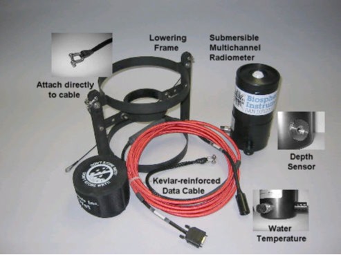 美國生物球儀器公司(Biospherical Instruments Inc.)的新型GUV-2511型地表紫外-可見光輻射儀是被廣泛使用的GUV-511型和GUV-541型的綜合體。與后兩者類似,GUV-2511也非常適合于長期監(jiān)測。GUV-2511可以測量紫外(UV)輻射的6個關鍵波長:305、313、320、340、380和395 nm,以及光合有效輻射(PAR,400-700 nm)。GUV數(shù)據(jù)可用于反演云層光學厚度和臭氧氣柱總量——兩個建立太陽光譜模型時的關鍵參數(shù)。