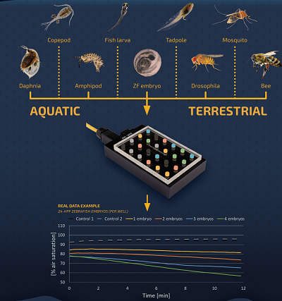 如果您正在研究魚類或無脊椎動物的卵/胚胎/幼蟲、橈足類動物或水蚤等微小生物的氧氣消耗率,那么可考慮封閉式24孔微孔板呼吸測量系統(tǒng)。