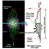 本報告使用CytoSense(以及CytoSub)分析了微囊藻。結(jié)果顯示CytoSense極寬的尺寸接受范圍,?使其能夠在單次運行中同時分析自然水樣的單個細胞和藻團。