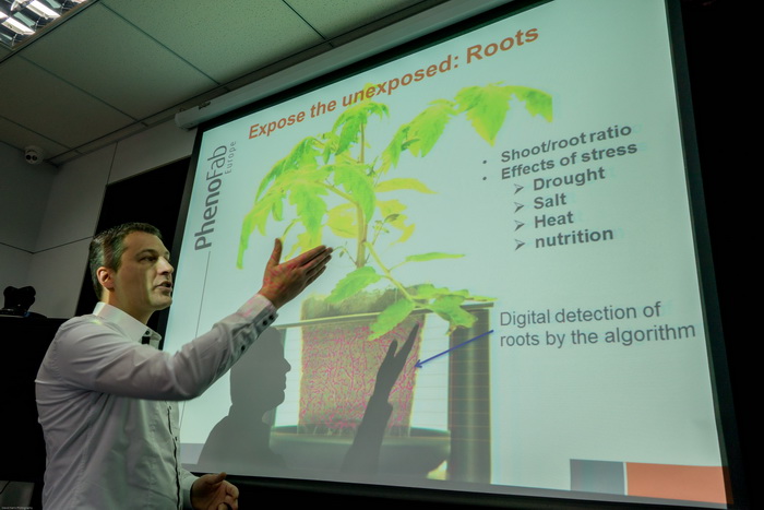 在報(bào)告中,Marco介紹了Keygene公司在植物表型研究領(lǐng)域的技術(shù)進(jìn)展,以“利用植物早期表型測定預(yù)測油菜產(chǎn)量”為例,分享了植物表型測量對于育種方向和過程的指導(dǎo)意義。隨著各類作物基因組測序完成,對于基因型研究越來越深入,而關(guān)于植物表型及其控制基因型之間的關(guān)聯(lián)的研究較少。目前,對表型的測量通常通過肉眼進(jìn)行,對于像顏色等難于正確識別的性狀,需要一個(gè)更加客觀的測量和記錄工具。