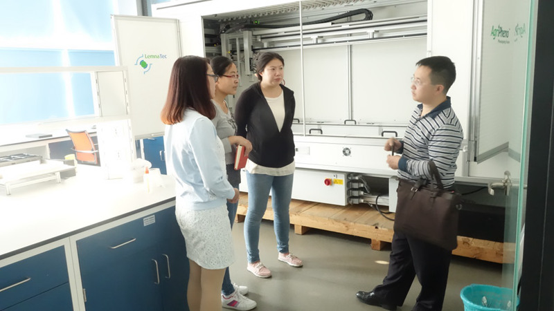潘院長(zhǎng)先后參觀了平臺(tái)的高通量表型設(shè)備Scanlyzer 3D、Scanlyzer HTS、ScanlyzerPL和PlantEye的實(shí)際操作演示,詳細(xì)了解了各設(shè)備的特點(diǎn)和應(yīng)用領(lǐng)域。隨后參觀了植物生理生態(tài)測(cè)量平臺(tái)和植物培養(yǎng)平臺(tái)。潘院長(zhǎng)認(rèn)為通過(guò)平臺(tái)的整個(gè)配置體系能很好了解作物表型與其產(chǎn)量、生理狀態(tài)之間的相互聯(lián)系,以及不同環(huán)境條件對(duì)作物生長(zhǎng)狀況、產(chǎn)量等的影響,具有很高的學(xué)習(xí)價(jià)值。同時(shí)歡迎平臺(tái)人員到貴州煙草研究院進(jìn)行考察,加強(qiáng)相互間的學(xué)習(xí)與交流。
