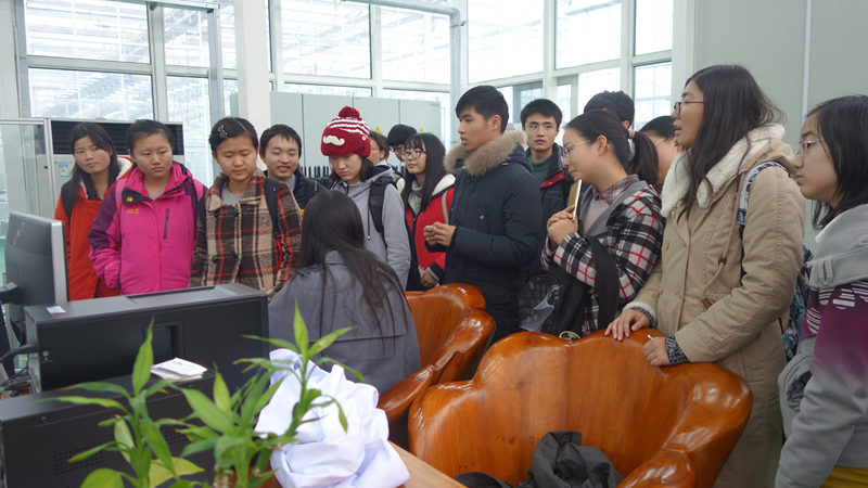 不結(jié)球白菜生長(zhǎng)發(fā)育過(guò)程中表型變化2015年12月10日下午,在華東師范大學(xué)李小芳老師的帶領(lǐng)下,生命科學(xué)學(xué)院的25名大一新生來(lái)Agripheno?平臺(tái)進(jìn)行參觀和學(xué)習(xí)。平臺(tái)技術(shù)工程師李瑞熱情接待并陪同參觀。