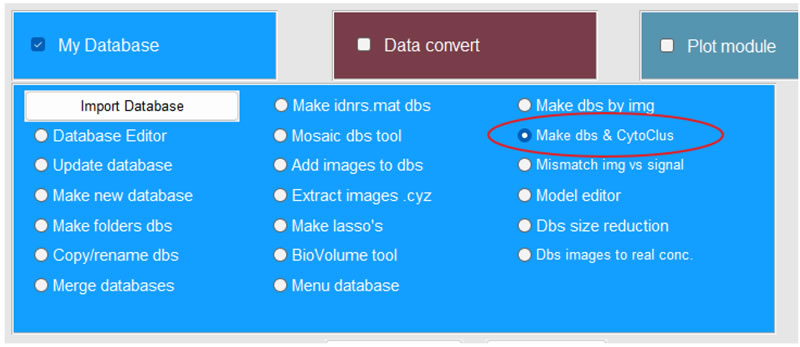 打開數(shù)據(jù)庫模塊,選擇“Make dbs & CytoClus”選項(xiàng)即可。