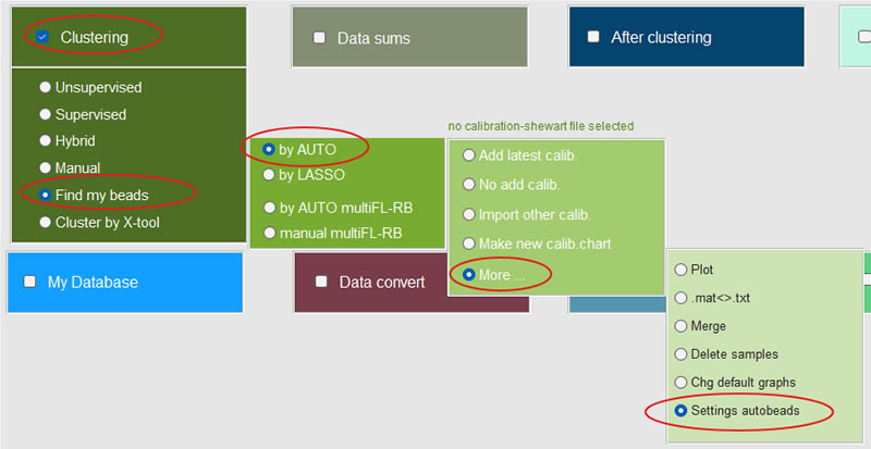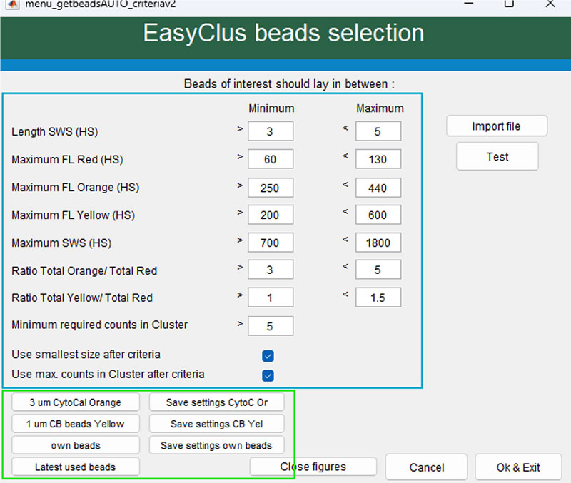在 EasyClus 中,這一切由“Find my beads”工具自動完成;但微珠的特征參數(shù)需根據(jù)您實(shí)際使用的熒光微珠類型以及儀器探測器設(shè)置(PMT 電壓)手動添加或調(diào)整。